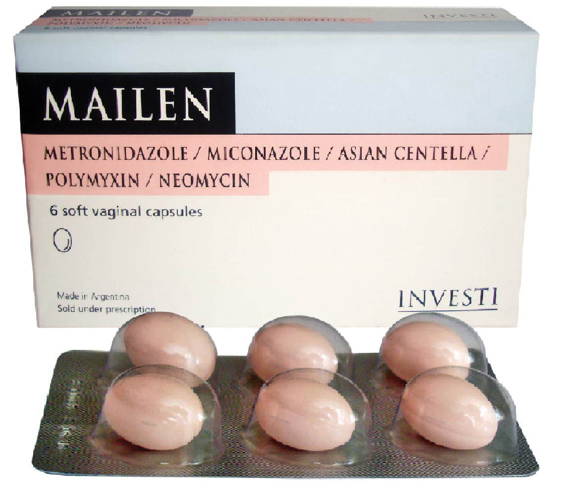 | Mailen vag. Caps. N6 | METRONIDAZOLE, MICONAZOLE NITRATE, NEOMYCIN, POLYMYXIN B SULFATE, CENTELLA ASIATICA |